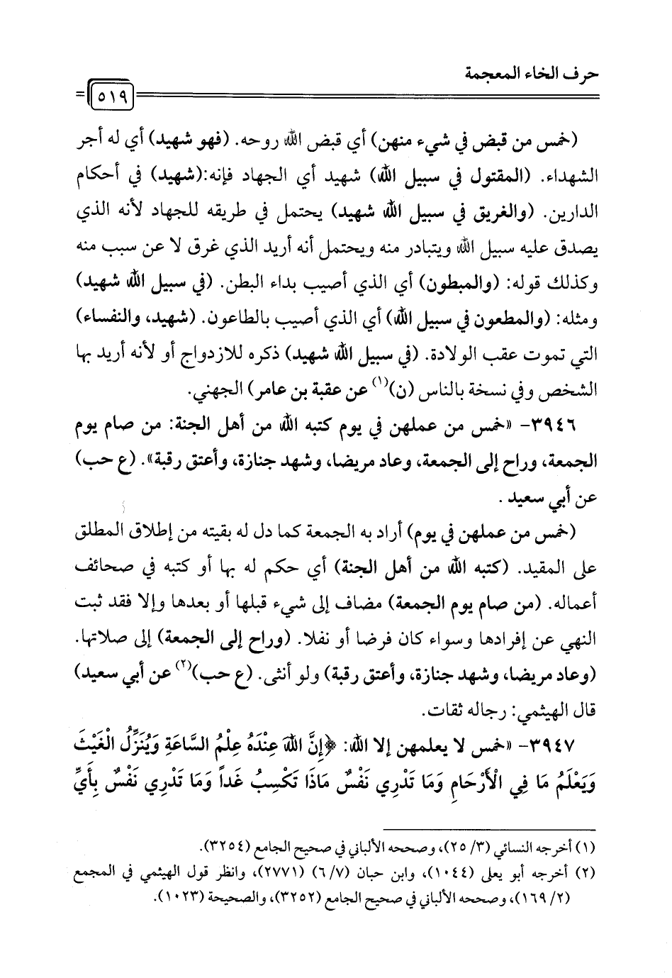 3947 - "خمس لا يعلمهن إلا الله: {إِنَّ اللَّهَ عِنْدَهُ عِلْمُ السَّاعَةِ وَيُنَزِّلُ الْغَيْثَ وَيَعْلَمُ مَا فِي الْأَرْحَامِ وَمَا تَدْرِي نَفْسٌ مَاذَا تَكْسِبُ غَدًا وَمَا تَدْرِي نَفْسٌ بِأَيِّ