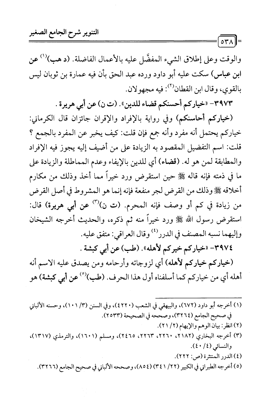 3973 - "خياركم أحسنكم قضاء للدين". (ت ن) عن أبي هريرة.