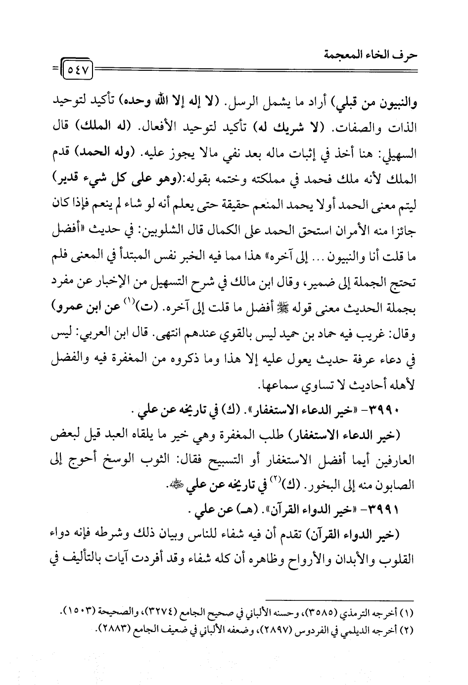 3990 - "خير الدعاء الاستغفار". (ك) في تاريخه عن علي.