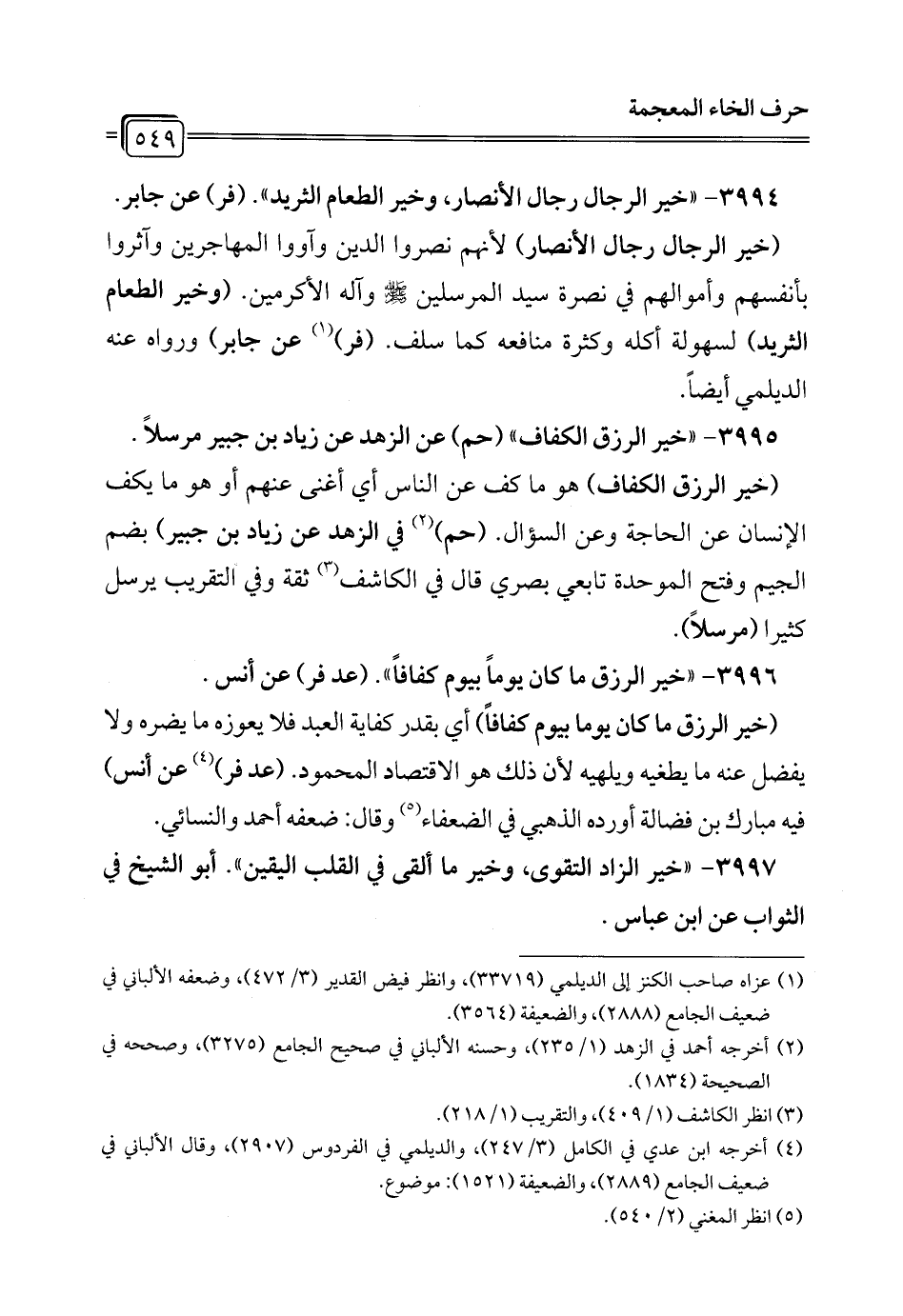 3995 - "خير الرزق الكفاف" (حم) عن الزهد عن زياد بن جبير مرسلاً.