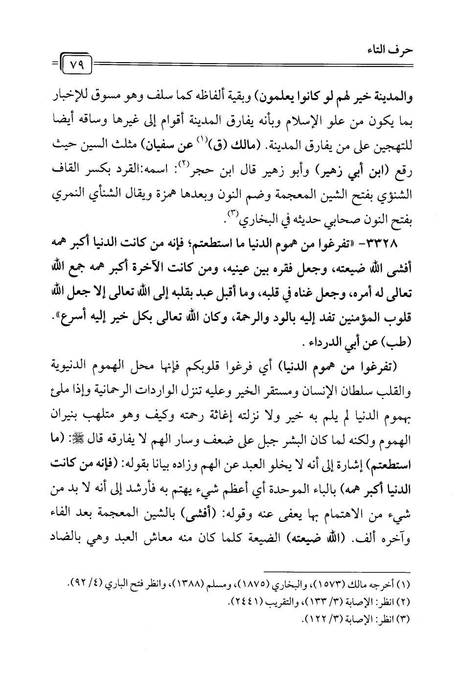 3328 - "تفرغوا من هموم الدنيا ما استطعتم؛ فإنه من كانت الدنيا أكبر همه أفشى الله ضيعته، وجعل فقره بين عينيه، ومن كانت الآخرة أكبر همه جمع الله تعالى له أمره، وجعل غناه في قلبه وما أقبل عبد بقلبه إلى الله تعالى إلا جعل الله قلوب المؤمنين تفد إليه بالود والرحمة وكان الله تعالى بكل خير إليه أسرع". (طب) عن أبي الدرداء.