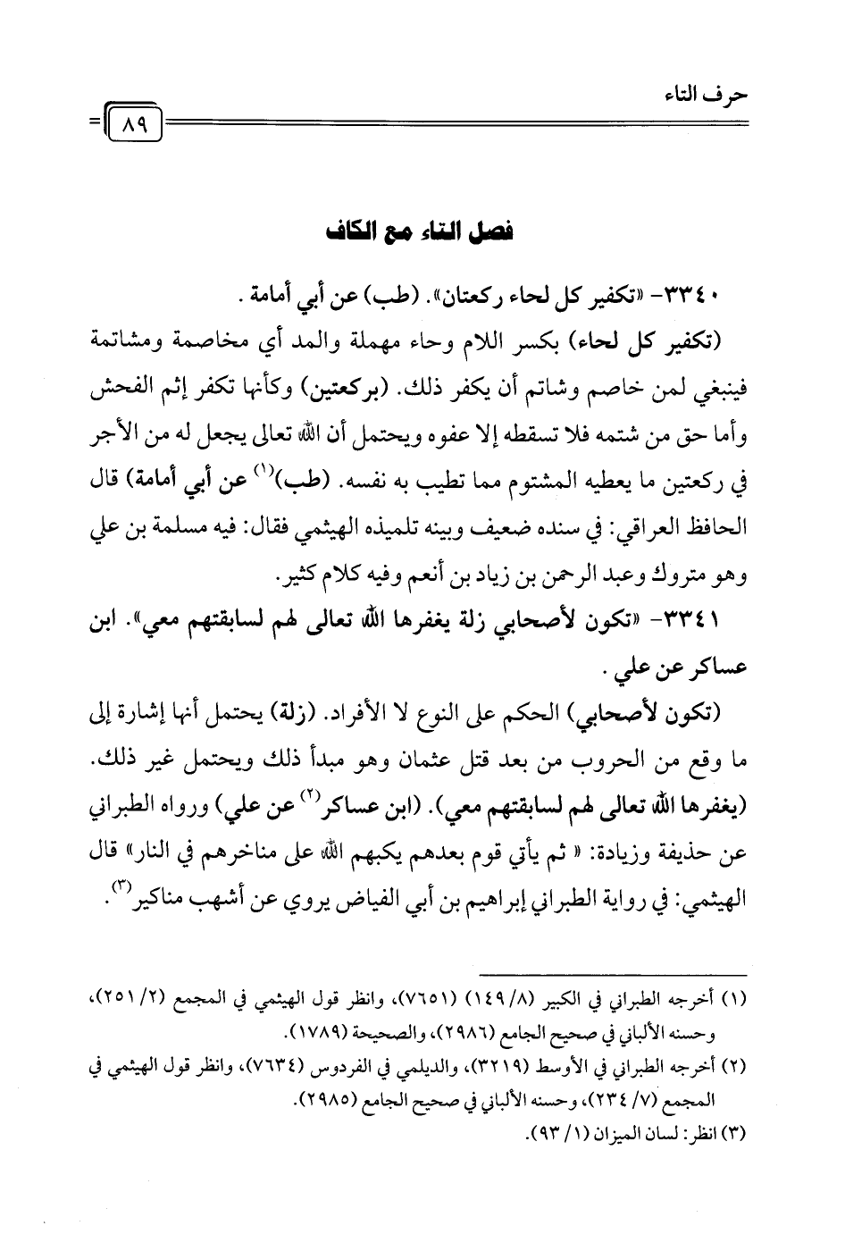 3340 - " تكفير كل لحاء ركعتان". (طب) عن أبي أمامة.