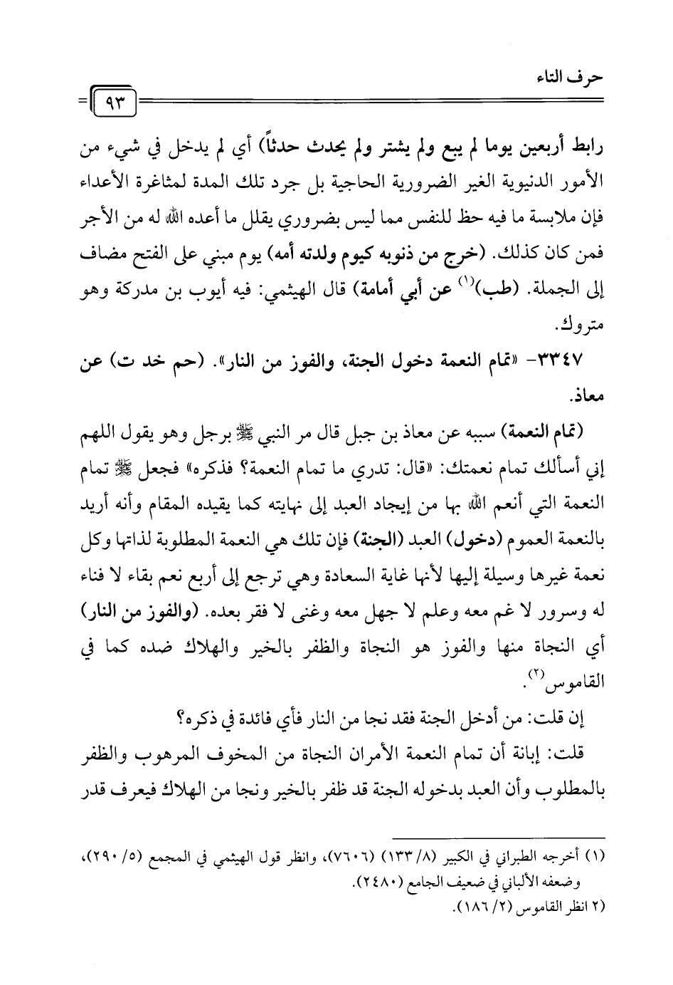 3347 - "تمام النعمة دخول الجنة، والفوز من النار". (حم خد ت) عن معاذ.