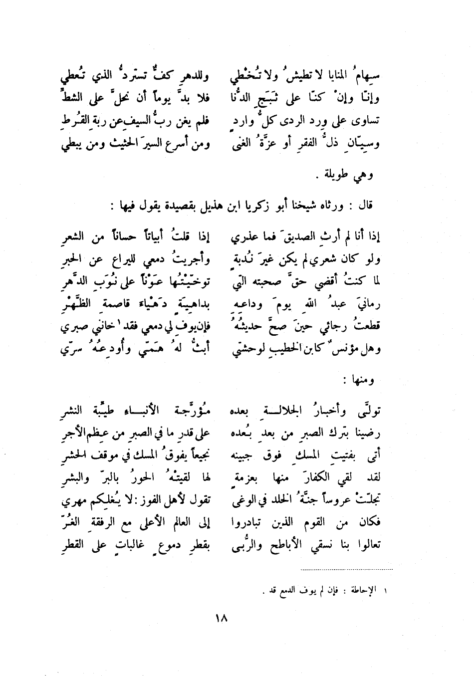 قال: ورثاه شيخنا أبو زكريا ابن هذيل بقصيدة يقول فيها: