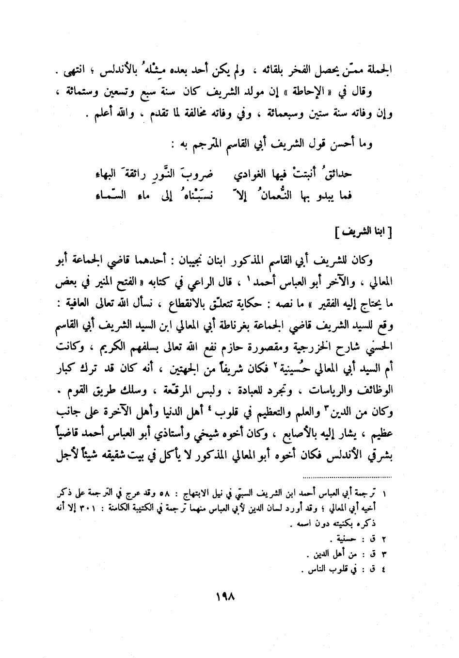 وما أحسن قول الشريف أبي القاسم المترجم به:
