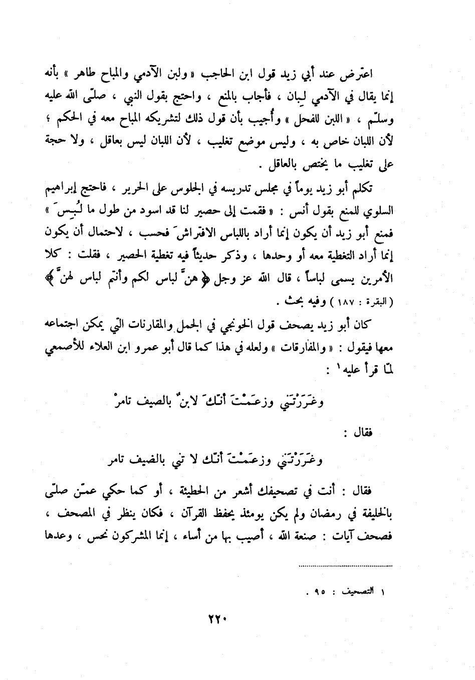 كان أبو زيد يصحف قول الخونجي في الجمل والمقارنات التي يمكن اجتماعه معها فيقول: " والمفارقات " ولعله في هذا كما قال أبو عمرو ابن العلاء للأصمعي لما قرأ عليه (1) :