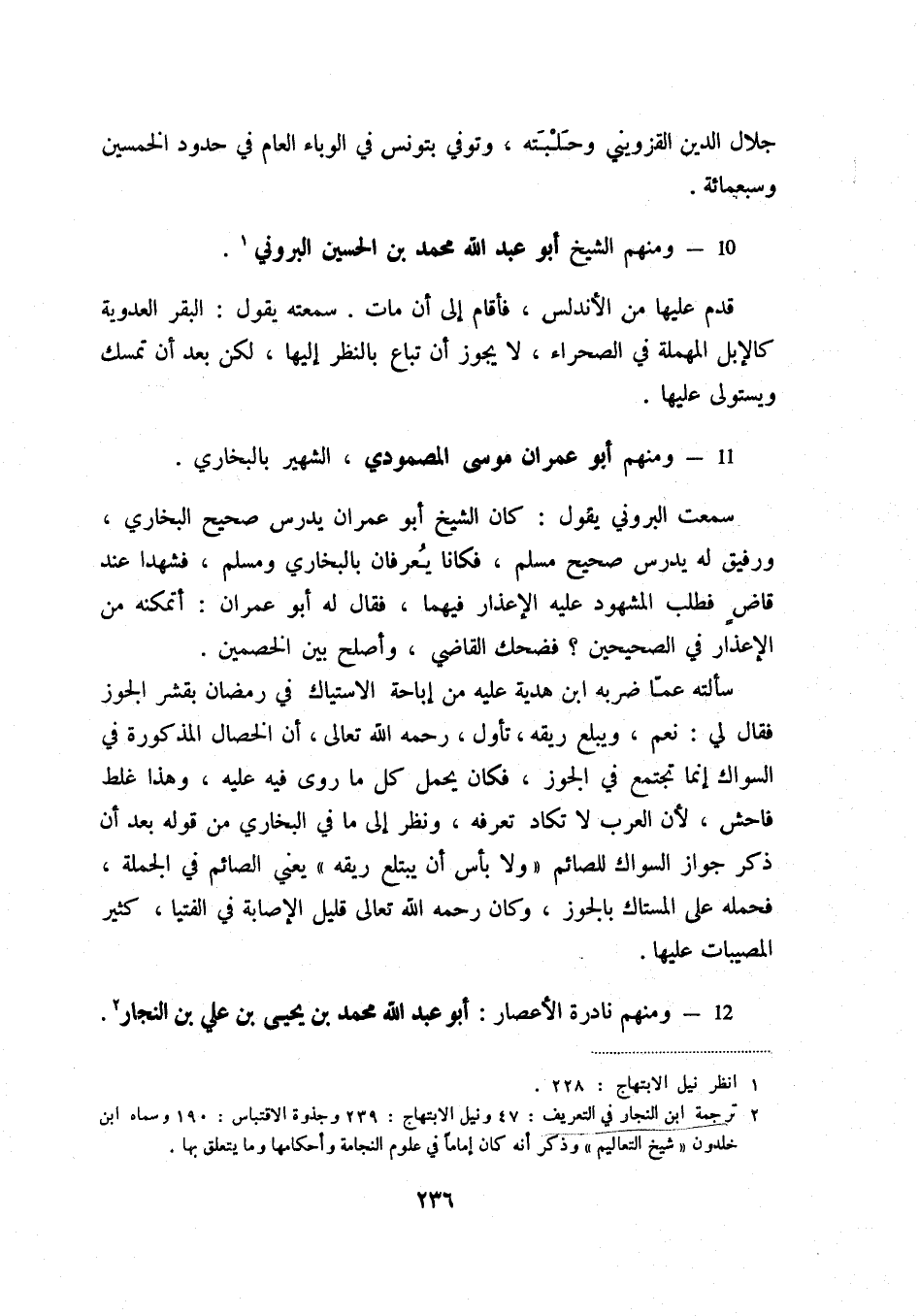 (2) ترجمة ابن النجار في التعريف: 47 ونيل الابتهاج: 239 وجذوة الاقتباس: 190 وسماه ابن خلدون " شيخ التعاليم " وذكر أنه كان إماما في علوم النجامة وأحكامها وما يتعلق بها.