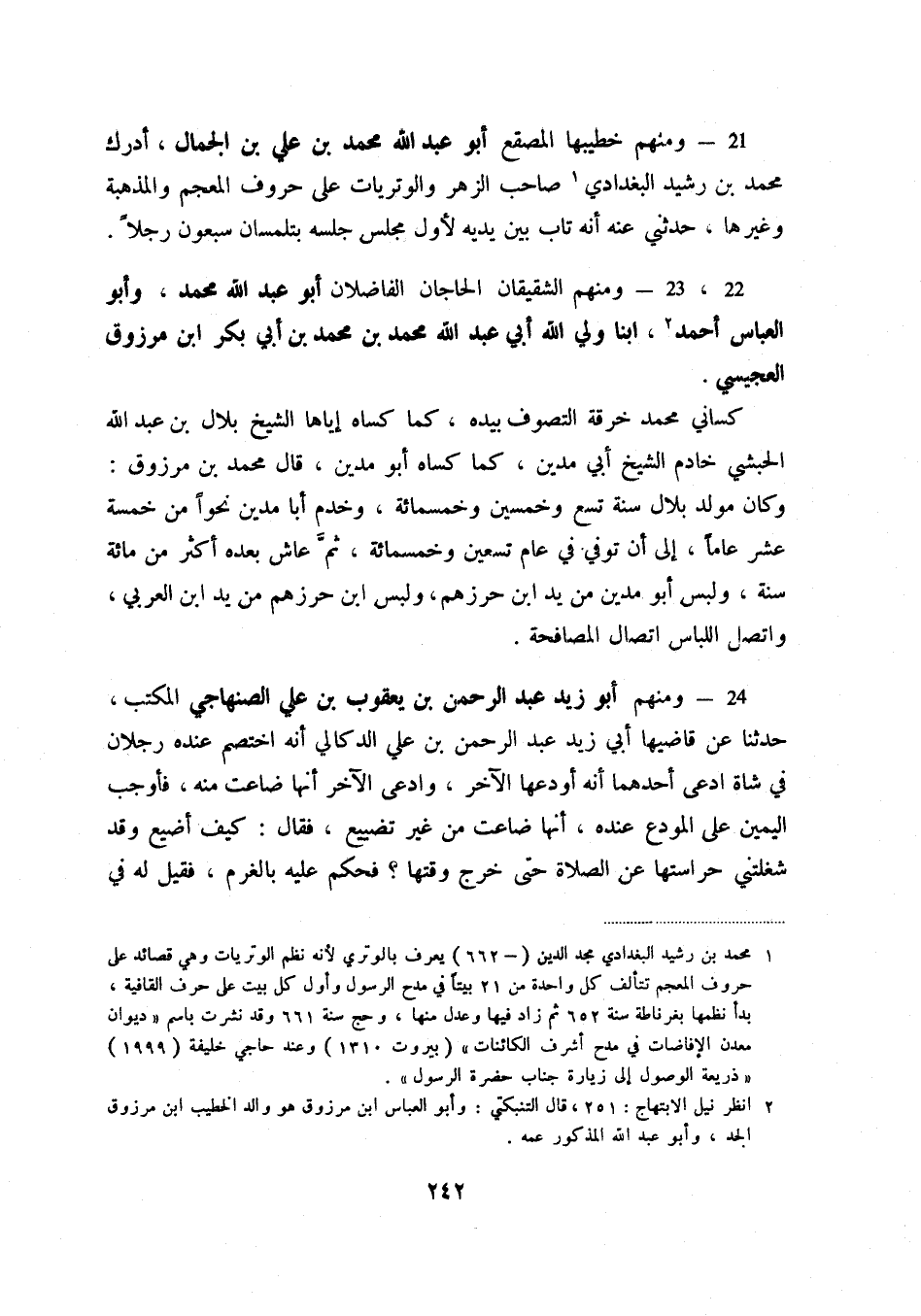 22، - 23 - ومنهم الشقيقان الحاجان الفاضلان أبو عبد الله محمد، وأبو العباس أحمد (2) ، ابنا ولي الله أبي عبد الله محمد بن محمد بن أبي بكر ابن مرزوق العجيسي.