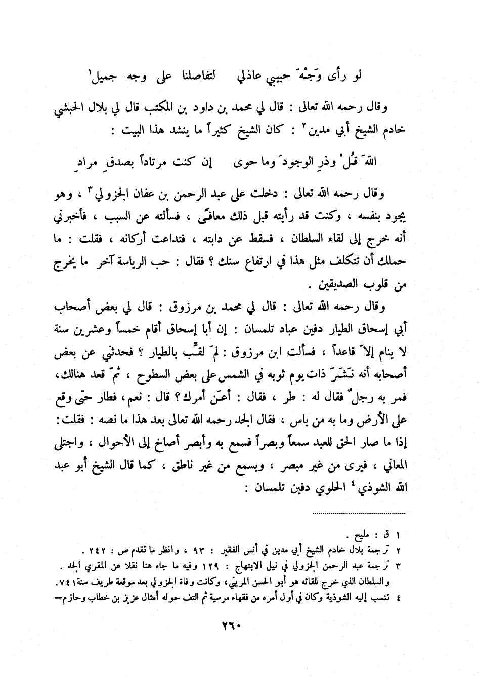 (2) ترجمة بلال خادم الشيخ أبي مدين في أنس الفقير: 93، وانظر ما تقدم ص: 242.