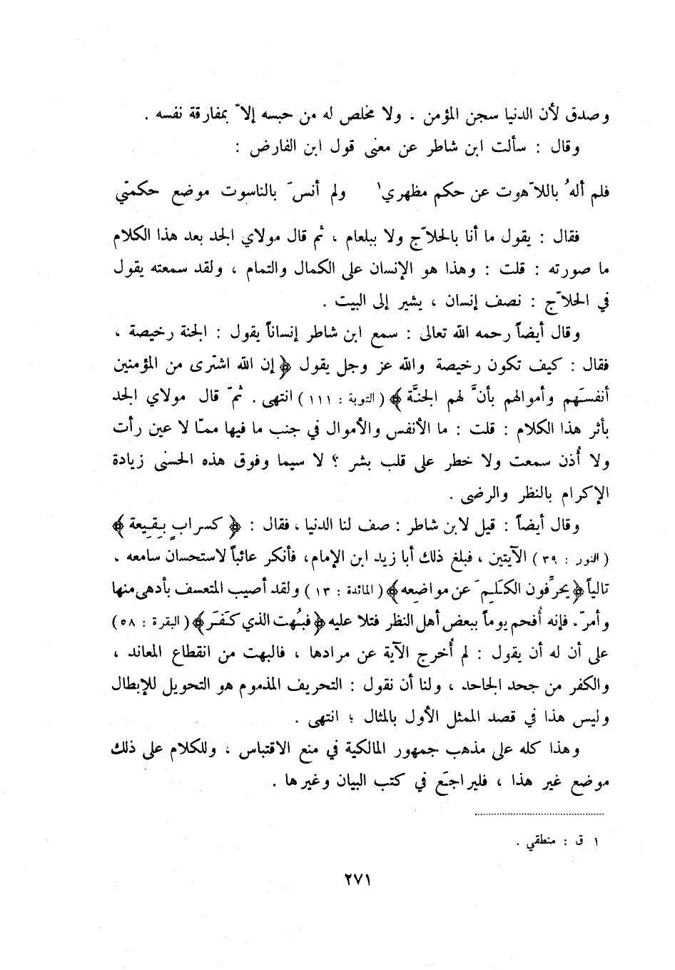 وهذا كله على مذهب جمهور المالكية في منع الاقتباس، وللكلام على ذلك موضع غير هذا، فليراجع في كتب البيان وغيرها.