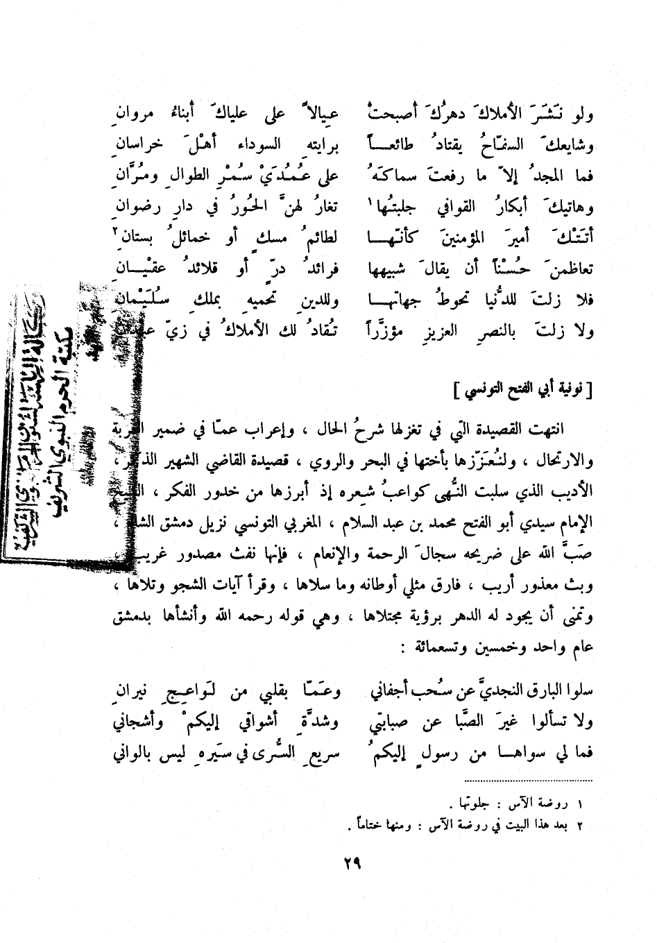 ولا زلت بالنصر العزيز مؤزراً ... تقاد لك الأملاك في زي عبدان [نونية أبي الفتح التونسي]
