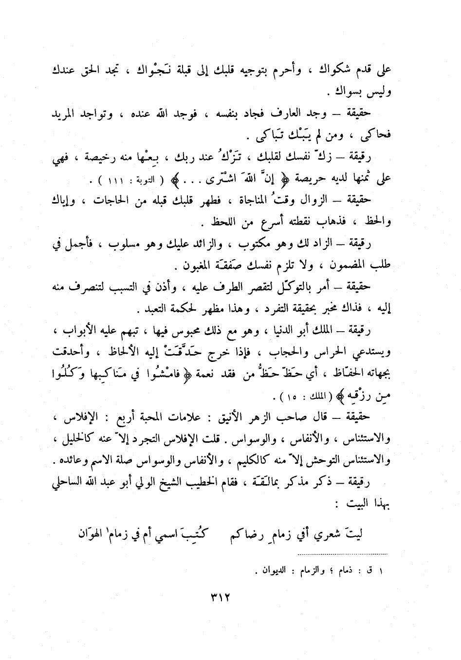 على قدم شكواك، وأحرم بتوجيه قلبك إلى قبلة نجواك، تجد الحق عندك وليس بسواك.