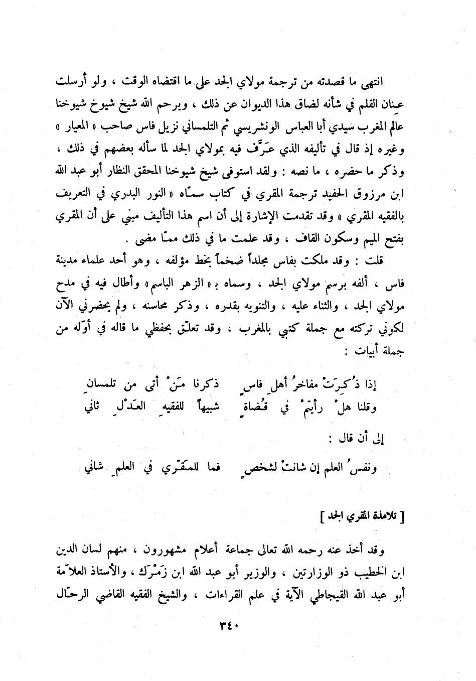 ونفس العلم إن شانت لشخص ... ما للمقري في العلم شاني [تلامذة المقري الجد]