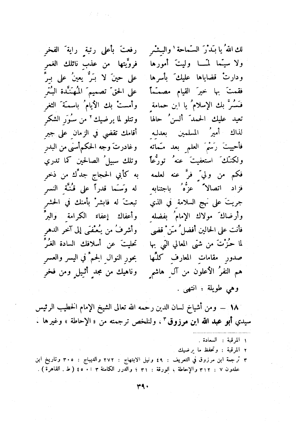 18 - من أشياخ لسان الدين رحمه الله تعالى الشيخ الإمام الخطيب الرئيس سيدي أبو عبد الله ابن مرزوق (3) ، ولنلخص ترجمته من " الإحاطة " وغيرها،
