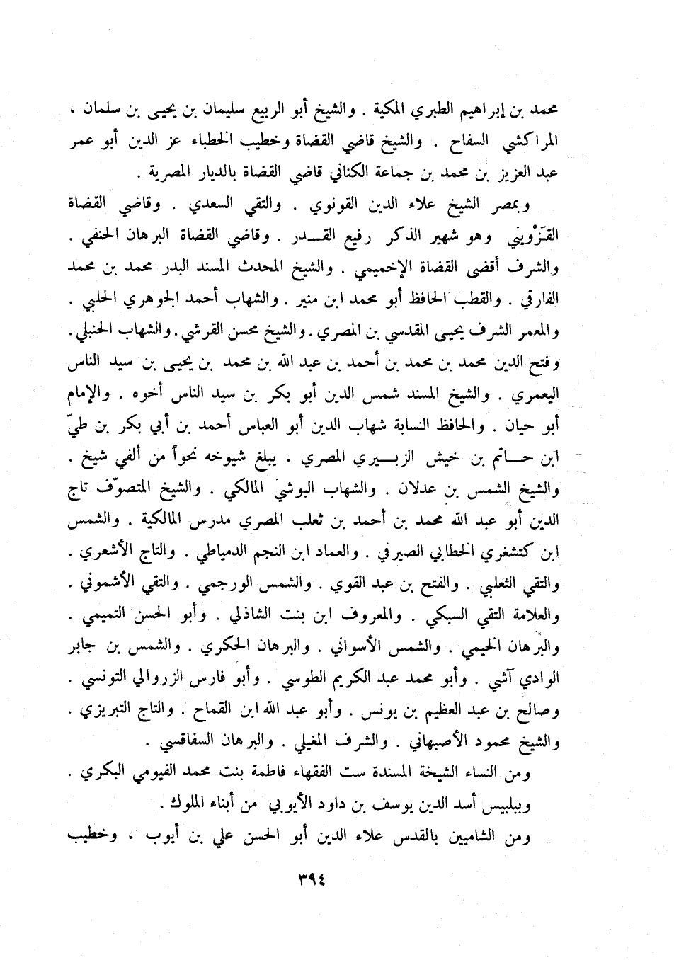 ومن النساء الشيخة المسندة ست الفقهاء فاطمة بنت محمد الفيومي البكري، وببلبيس أسد الدين يوسف ابن داود الأيوبي بن أبناء الملوك.