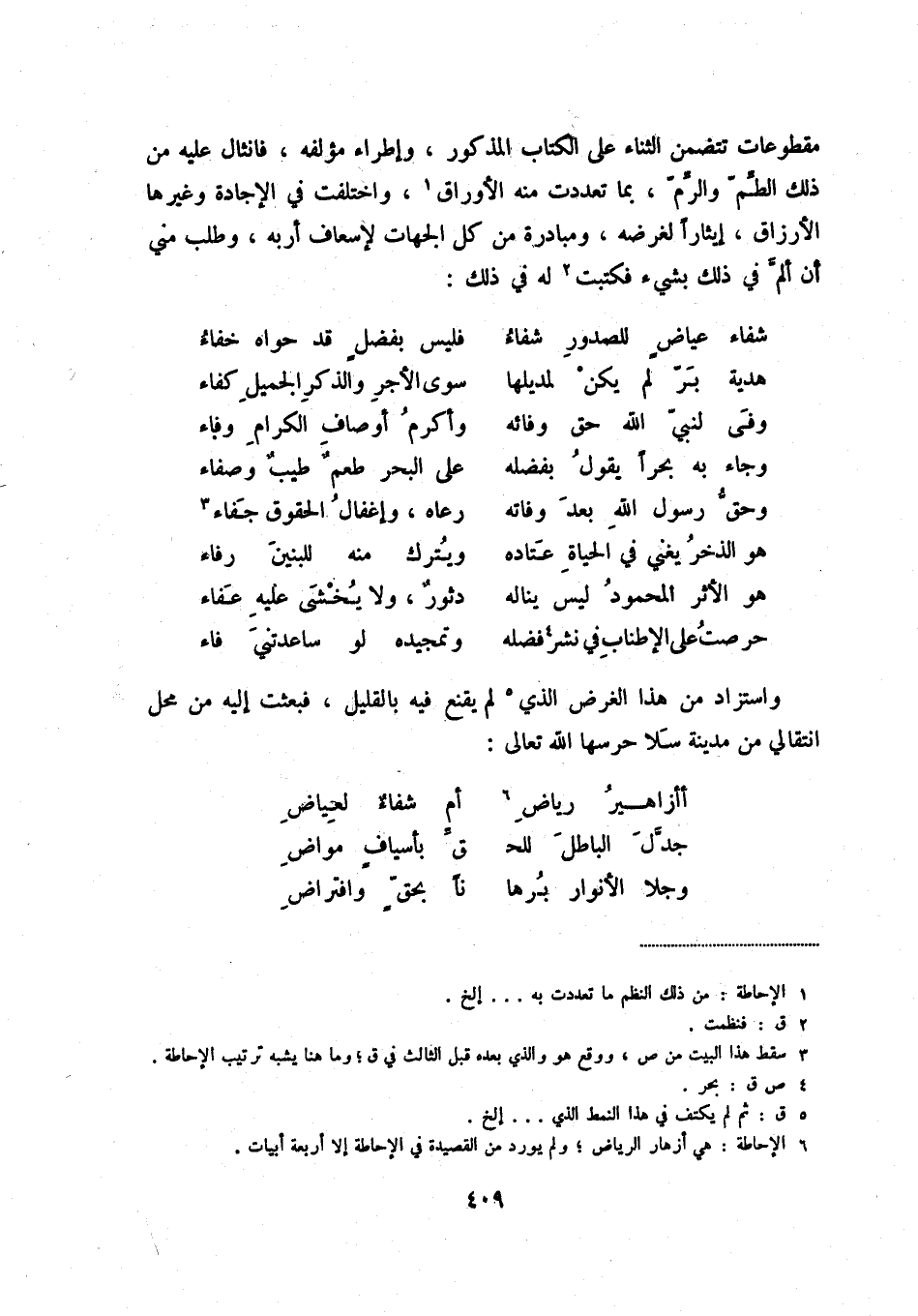حرصت على الإطناب في نشر (4) فضله ... وتمجيده لو ساعدتني فاء واستزاد من هذا الغرض الذي (5) لم يقنع فيه بالقليل فبعثت إليه من محل انتقالي من سلا حرسها الله تعالى: