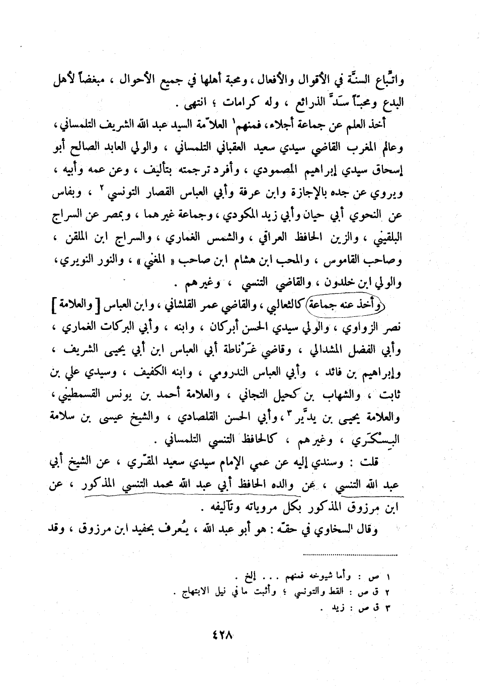 قلت: وسندي إليه عن عمي الإمام سيدي سعيد المقري، عن الشيخ أبي عبد الله التنسي، عن والده الحافظ أبي عبد الله محمد التنسي المذكور، عن ابن مرزوق المذكور بكل مروياته وتآليفه.