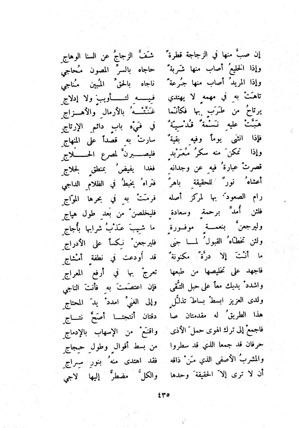 إن صب منها في الزجاج قطرة ... شف الزجاج عن السنا الوهاج