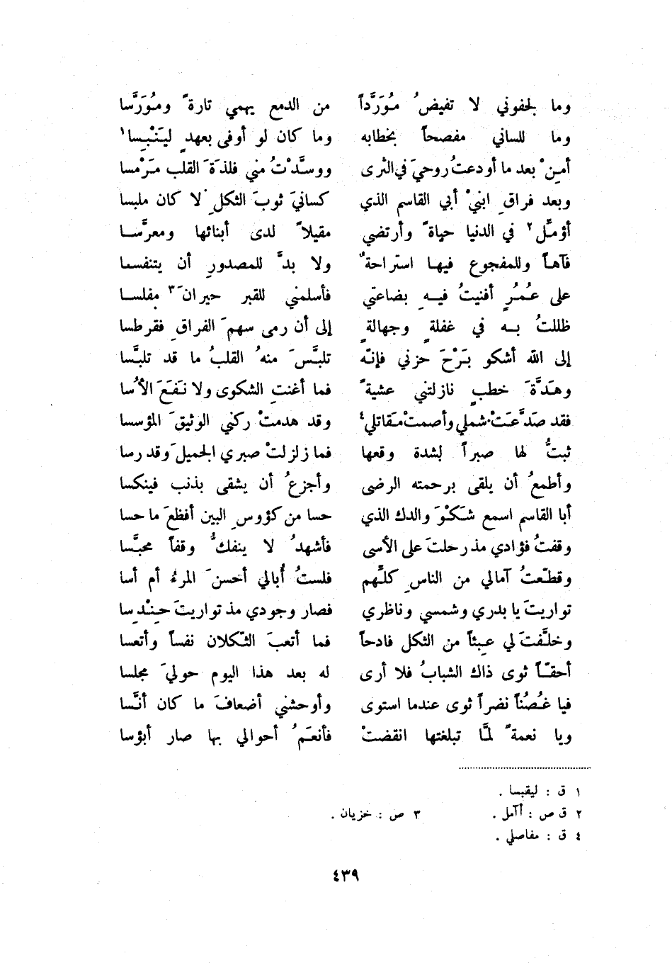 وخلفت لي عبئاً من الثكل فادحاً ... فما أتعب الثكلان نفساً وأتعسا