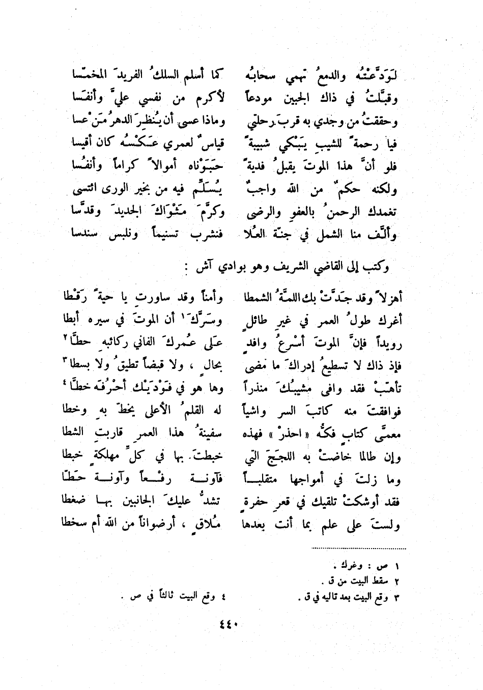 رويداً فإن الموت أسرع وافد ... على عمرك الفاني ركائبه حطا (2)