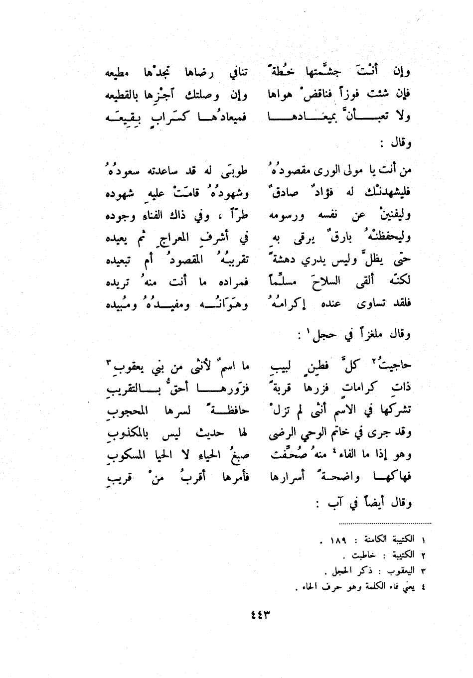 حاجيت (2) كل فطن لبيب ... ما اسم لأنثى من بني يعقوب (3)
