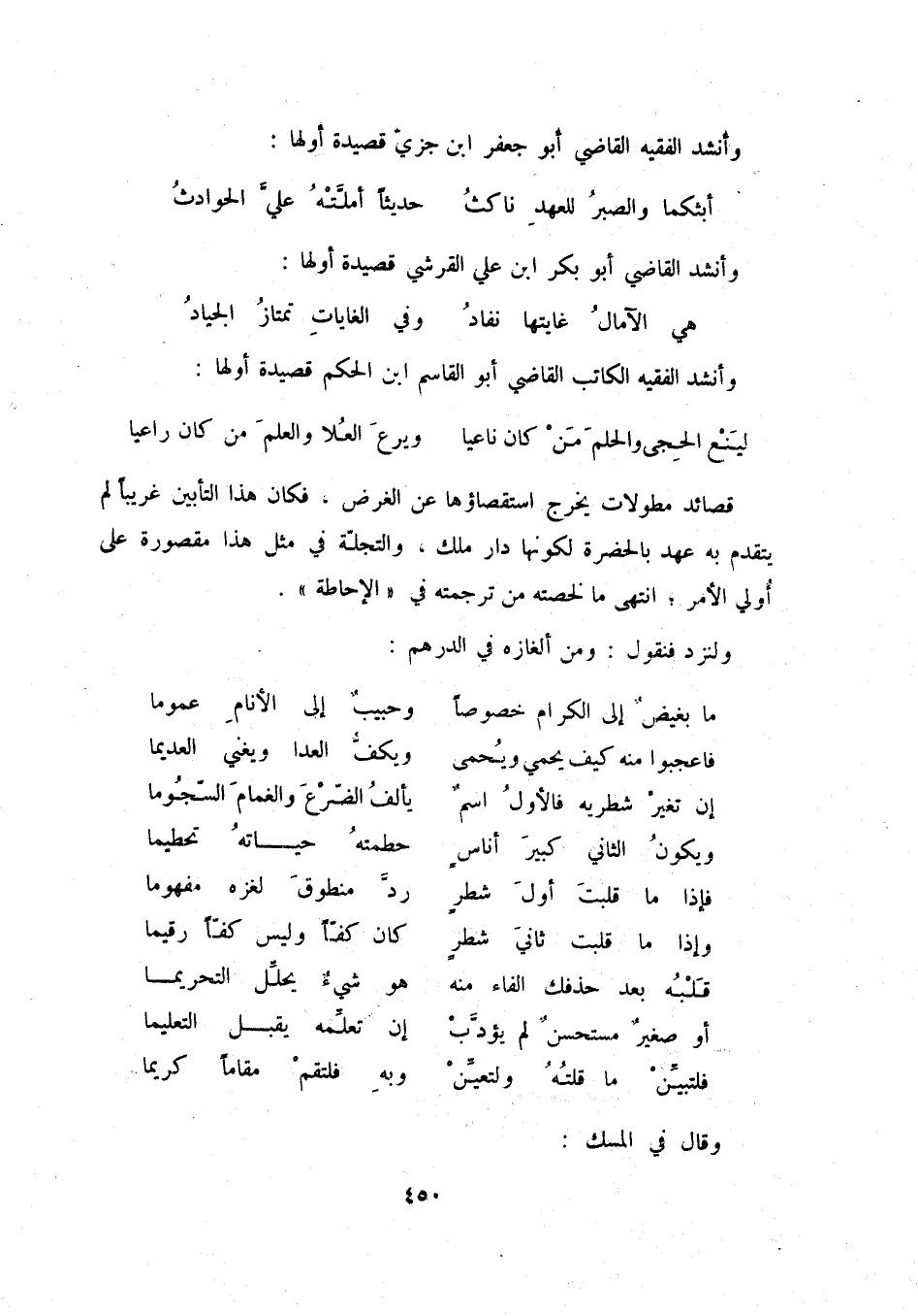 وأنشد الفقيه القاضي أبو جعفر ابن جزي قصيدة أولها: