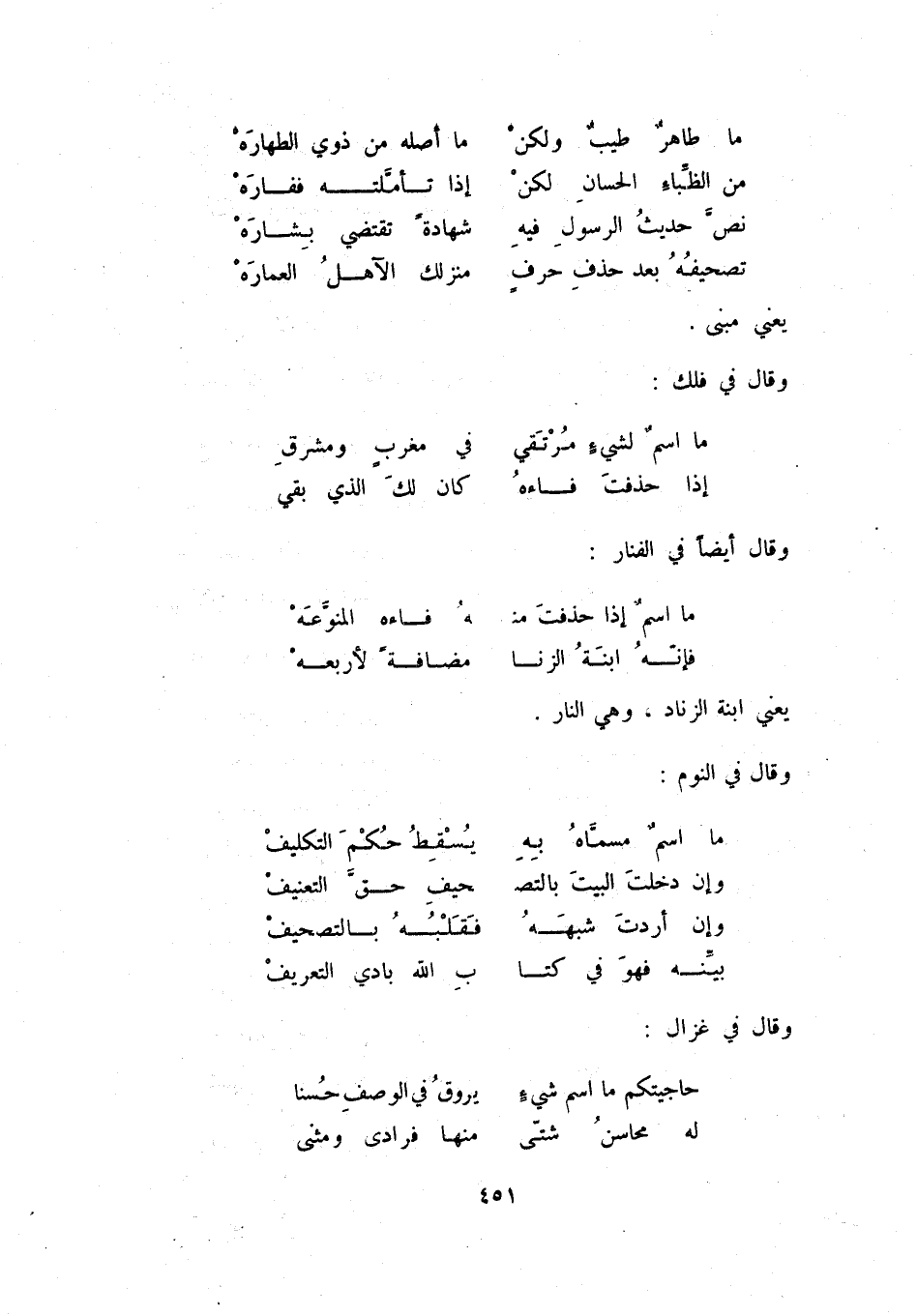 إذا حذفت فاءه ... كان لك الذي بقي وقال أيضاً في الفنار: