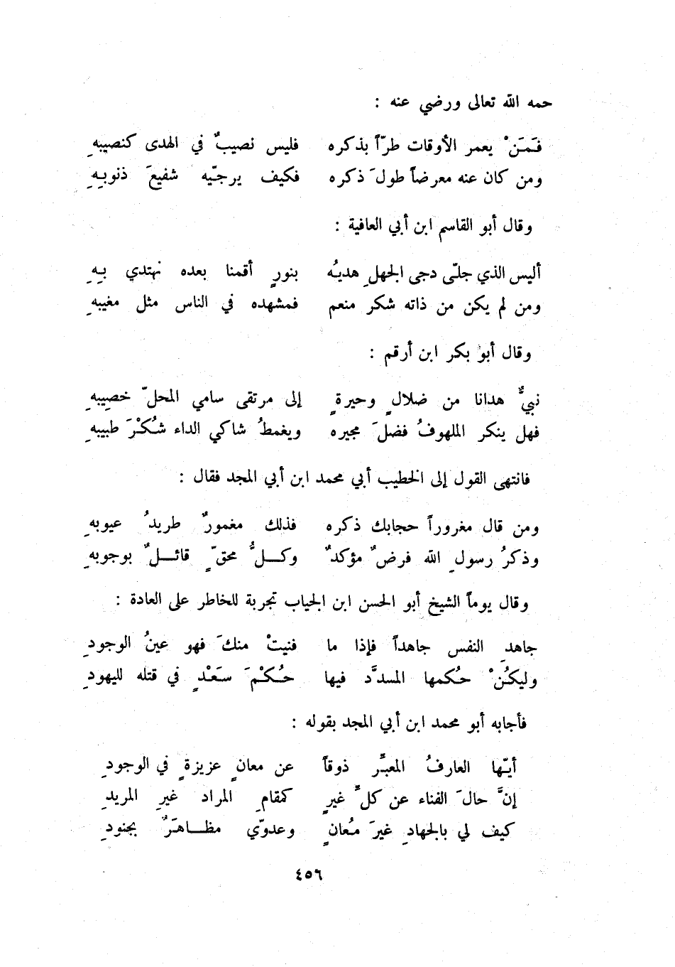 وذكر رسول الله فرض مؤكد ... وكل محق قائل بوجوبه وقال يوماً الشيخ أبو الحسن ابن الجياب تجربة للخاطر على العادة: