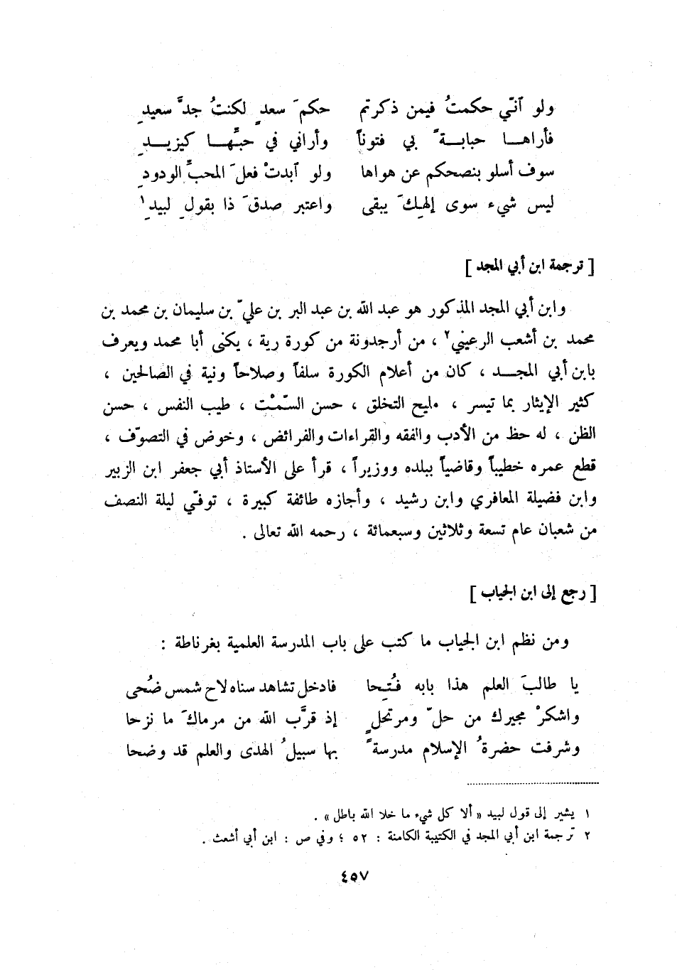 ليس شيء شوى إلهك يبقى ... واعتبر صدق ذا بقول لبيد (1) [ترجمة ابن أبي المجد]