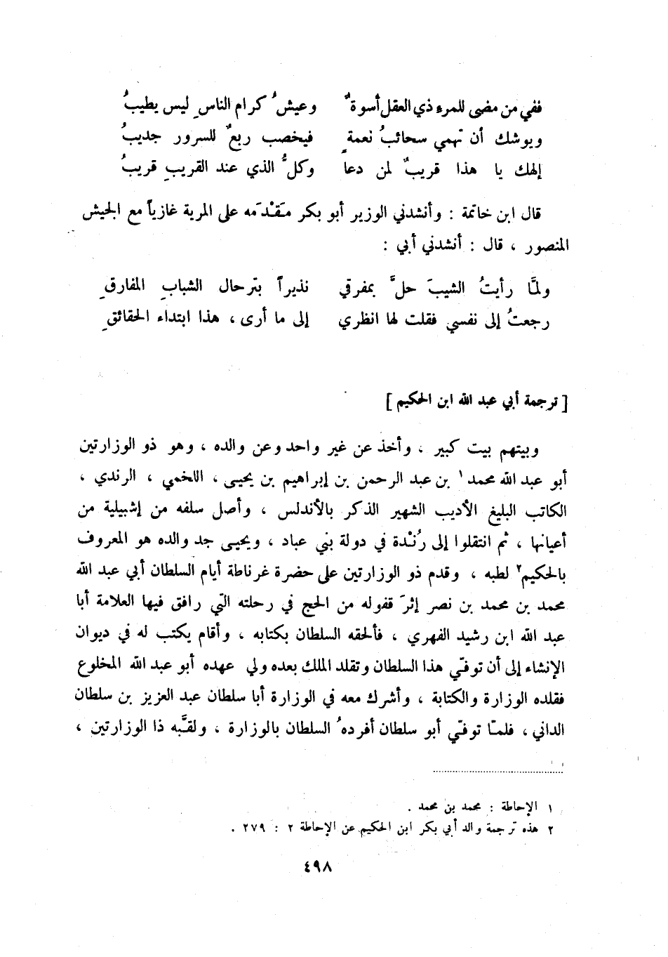 (2) هذه ترجمة والد أبي بكر ابن الحكيبم عن الإحاطة 2: 279.