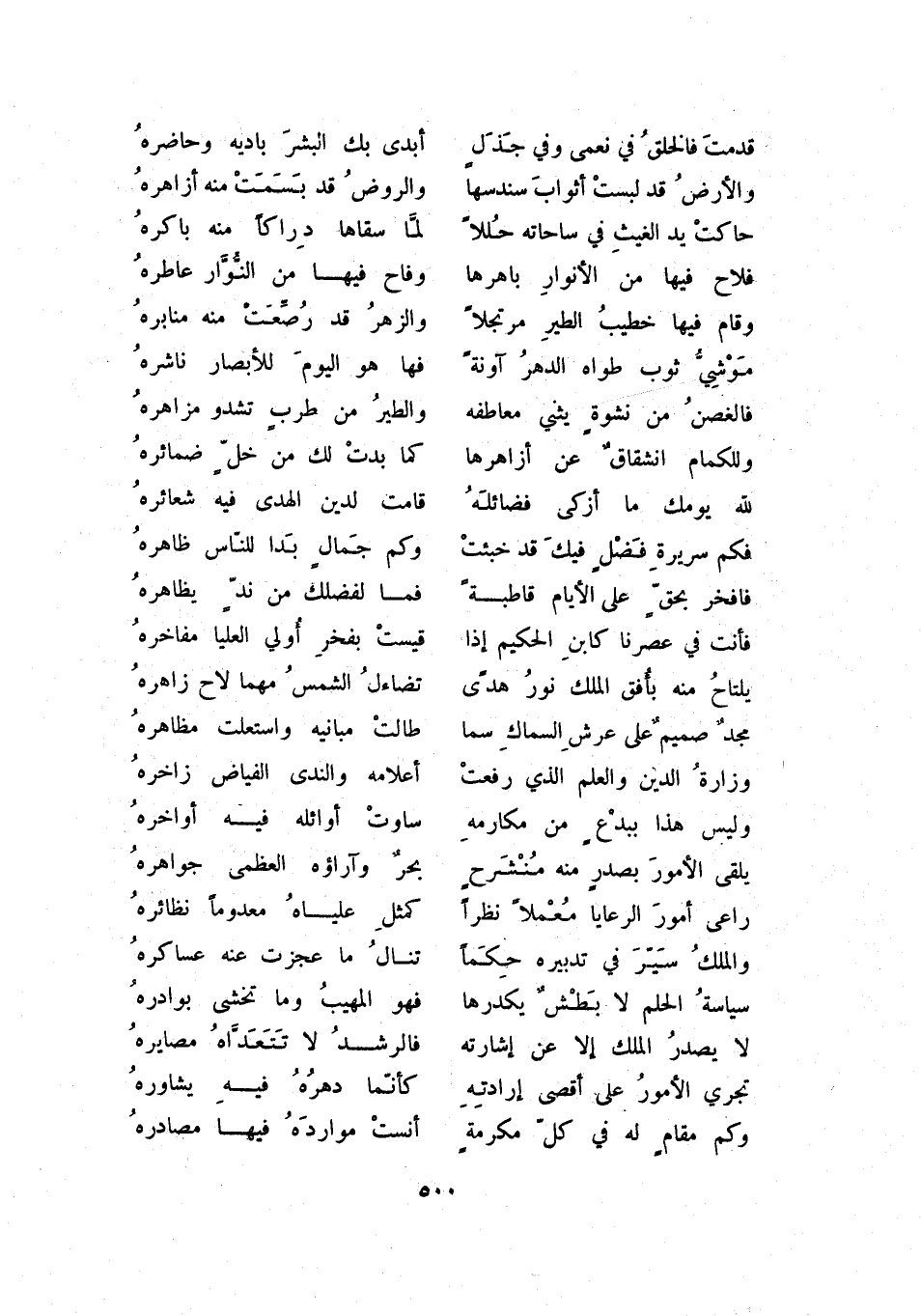 وزارة الدين والعلم التي رفعت ... أعلامه والندى الفياض زاخره