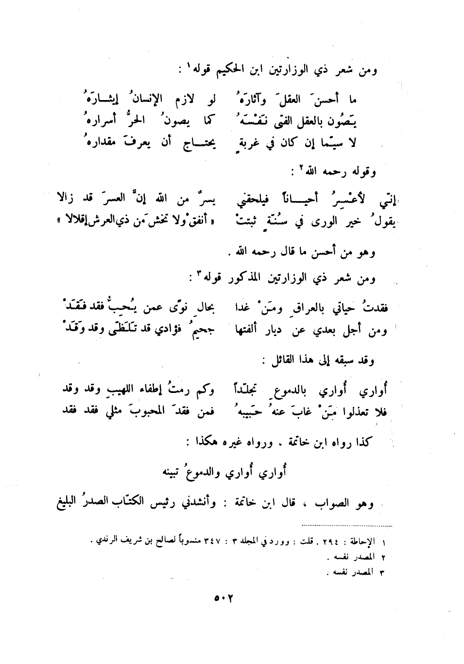 ومن شعر ذي الوزارتين المذكور قوله (3) :