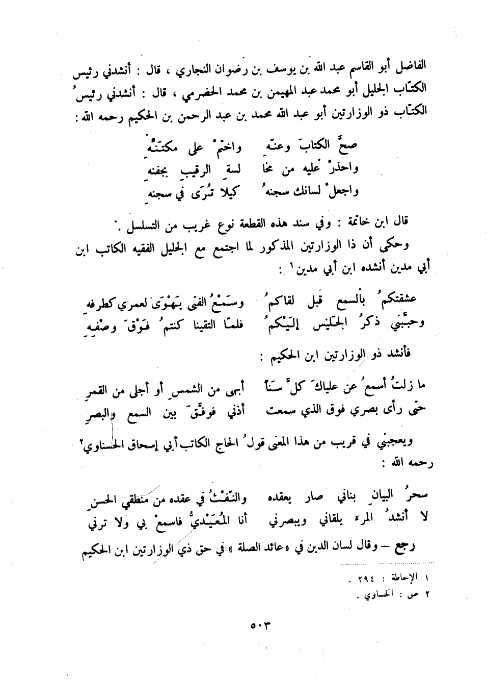 لا أنشد المرء يلقاني ويبصرني ... أنا المعيدي فاسمع بي ولا ترني رجع - وقال لسان الدين في عائد الصلة في حق ذي الوزارتين ابن الحكيم