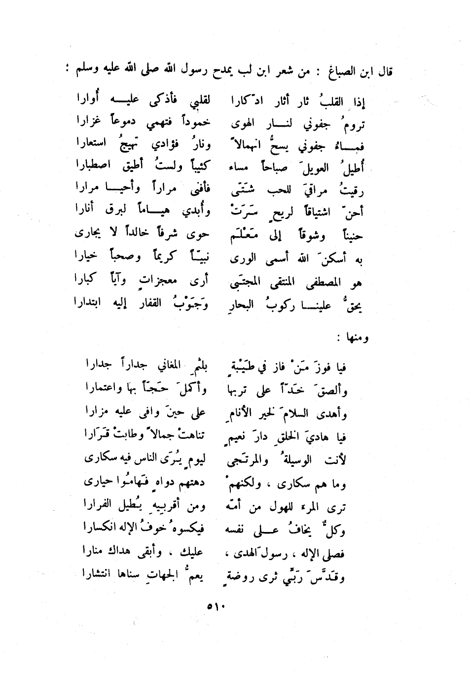 قال ابن الصباغ: من شعر ابن لب يمدح رسول الله صلى الله عليه وسلم: