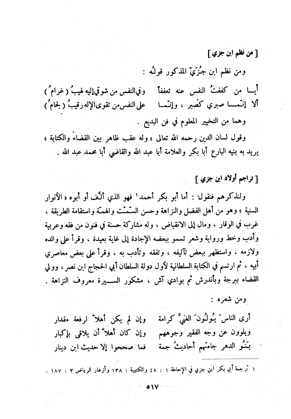 (1) ترجمة أبي بكر بن جزي في الإحاطة 1: 48 والكتيبة: 138 وأزهار الرياض 3: 187.