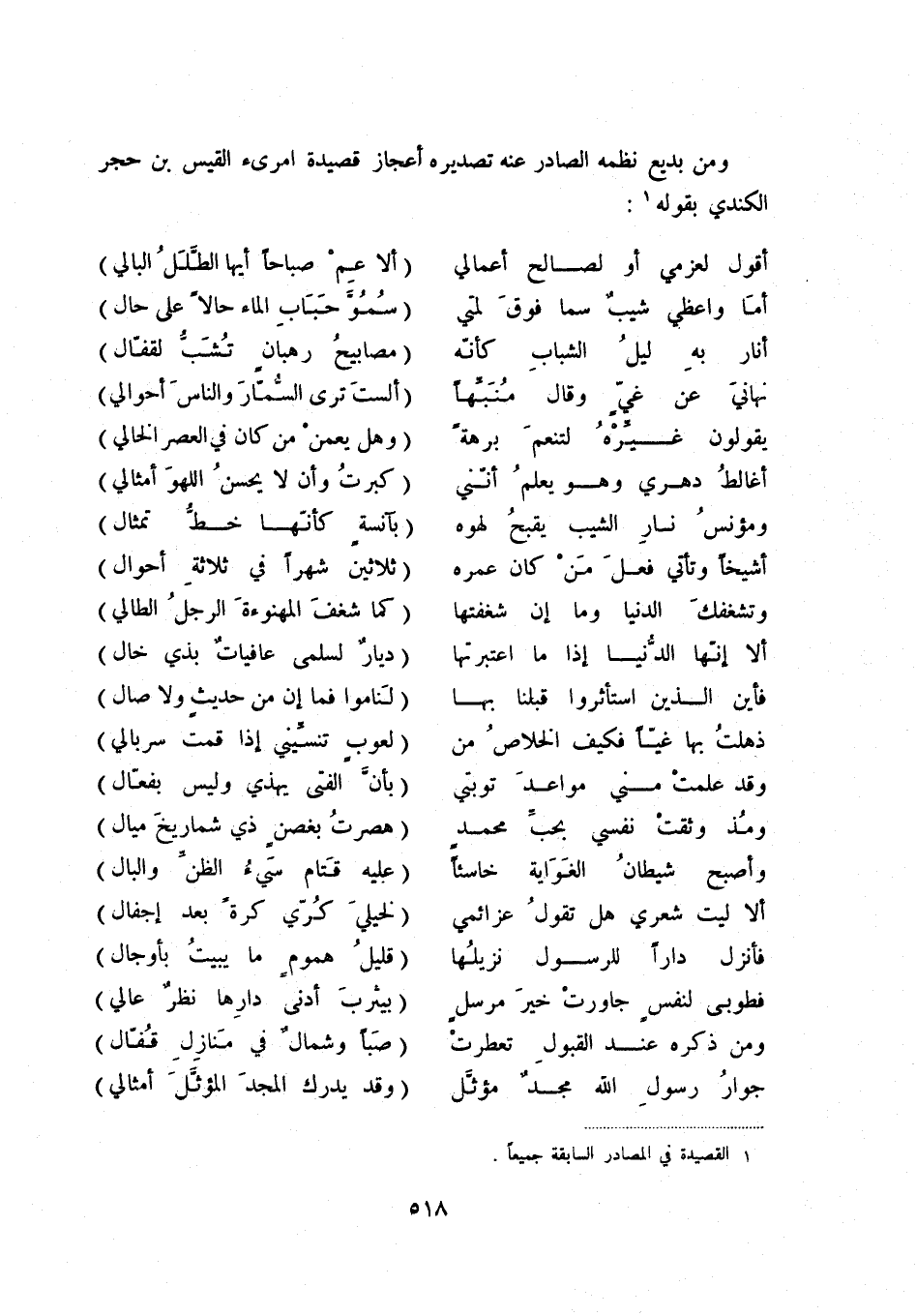 ومن بديع نظمه الصادر عنه تصديره أعجاز قصيدة امرئ القيس بن حجر الكندي بقوله (1) :