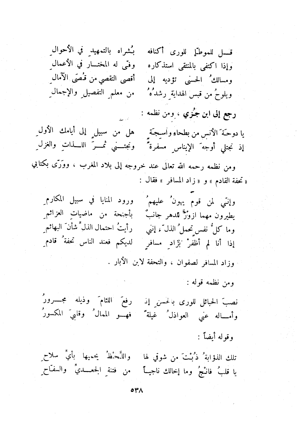 إذا أنا لم أظفر بزاد مسافر ... لديكم فعند الناس تحفة القادم وزاد المسافر لصفوان، والتحفة لابن الأبار.