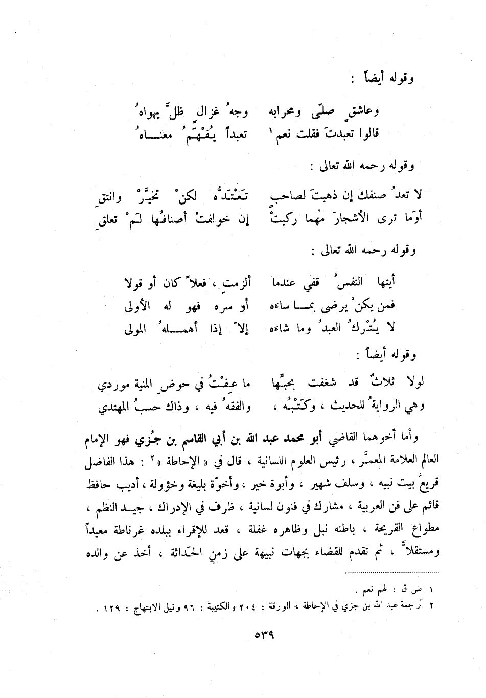 (2) ترجمة عبد الله بن جزي في الإحاطة، الورقة: 204 والكتيبة: 96 ونيل الابتهاج: 129.