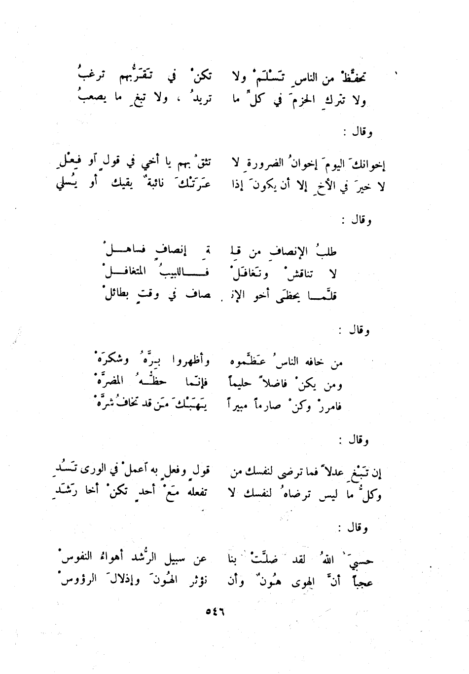 وكل ما ليس ترضاه لنفسك لا ... تفعله مع أحد تكن أخا رشد وقال: