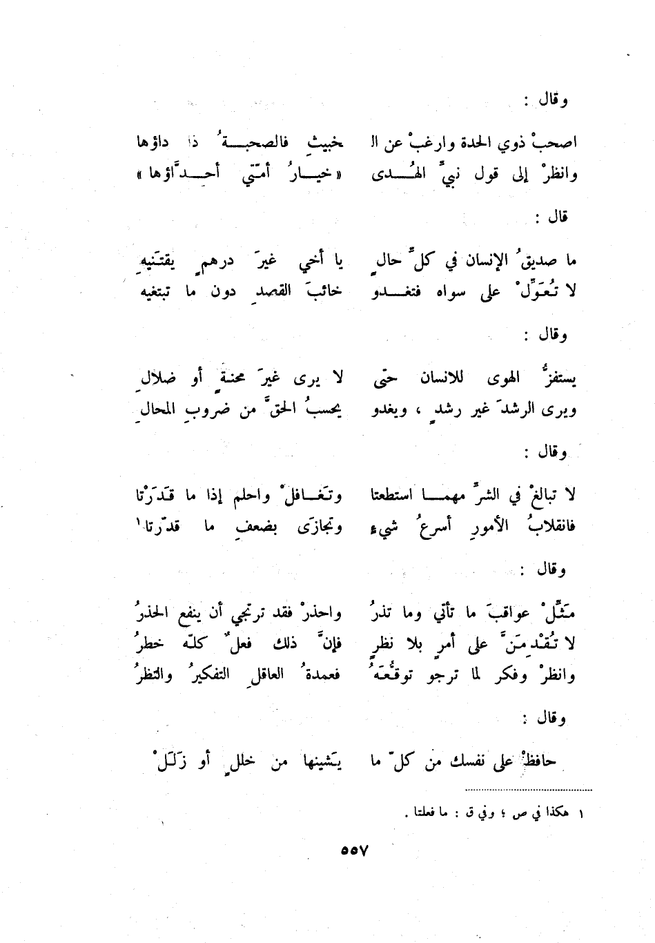 وانظر وفكر لما ترجو توقعه ... فعمدة العاقل التفكير والنظر وقال: