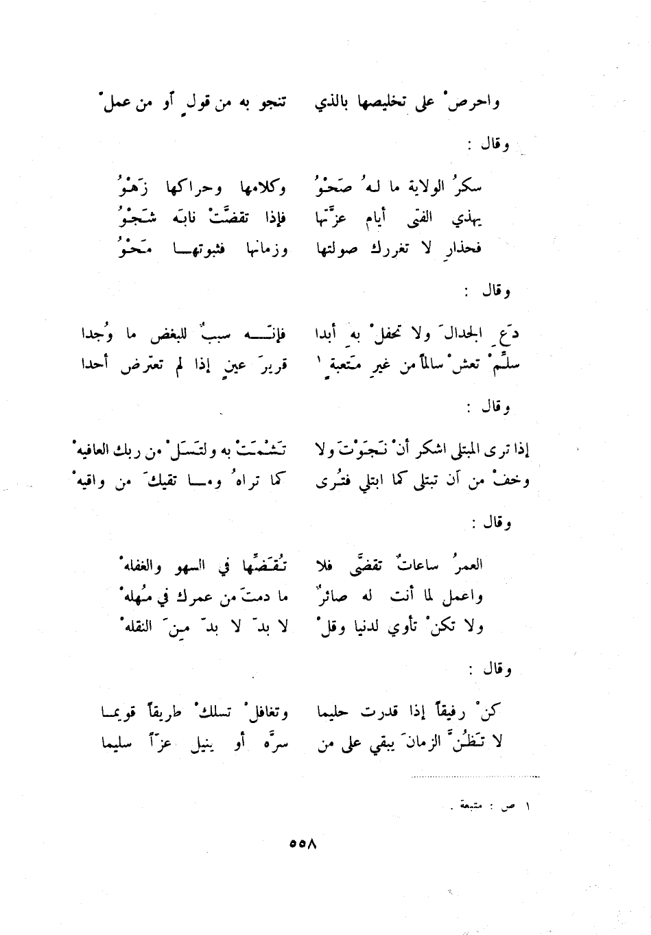 سلم تعش سالماً من غير متعبة (1) ... قرير عين إذا لم تعترض أحدا وقال: