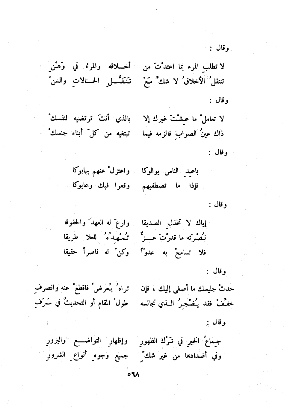 إياك لا تخذل الصديقا وارع له العهد والحقوقا
