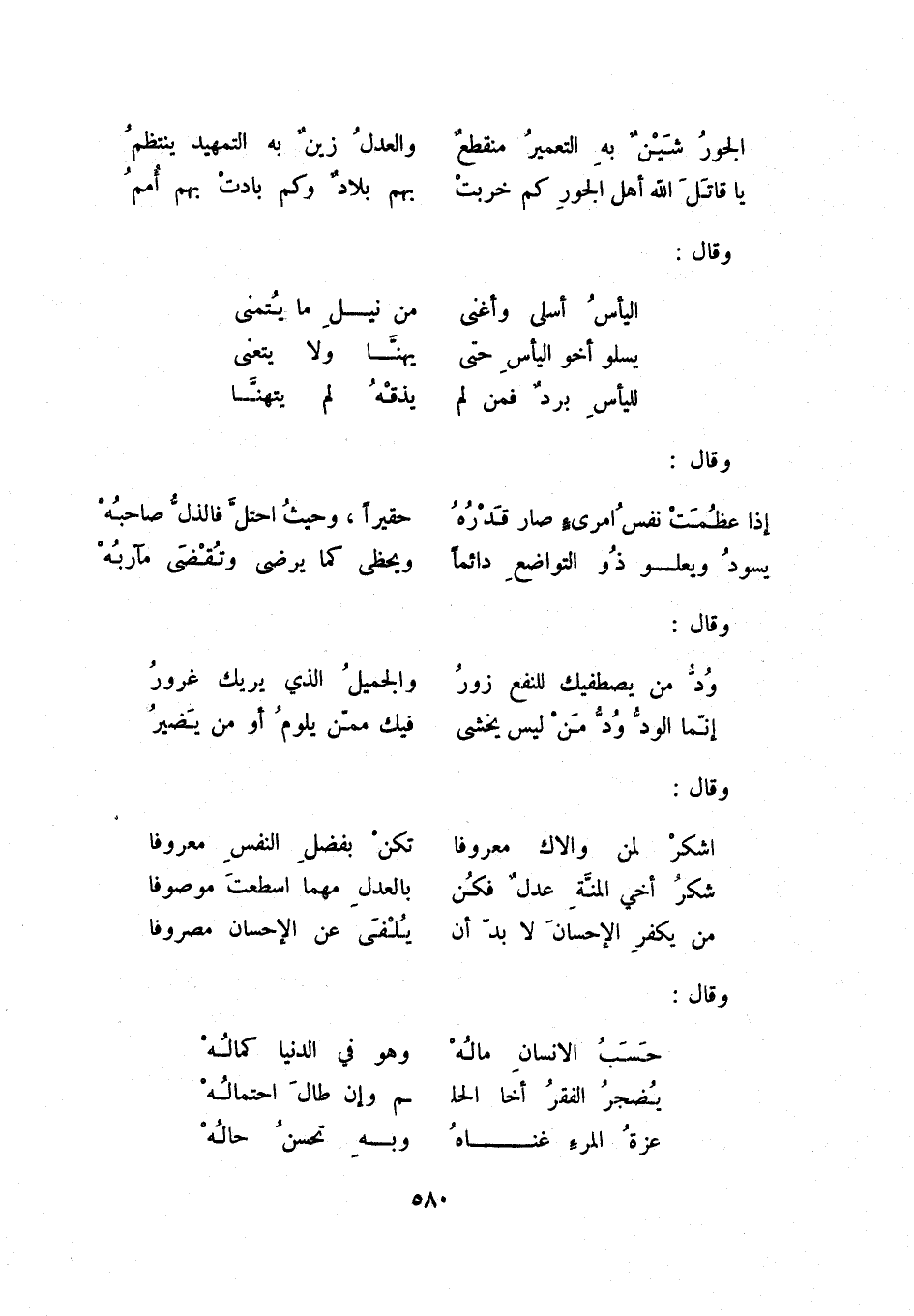 يا قاتل الله أهل الجور كم خربت ... بهم بلاد وكم بادت بهم أمم وقال: