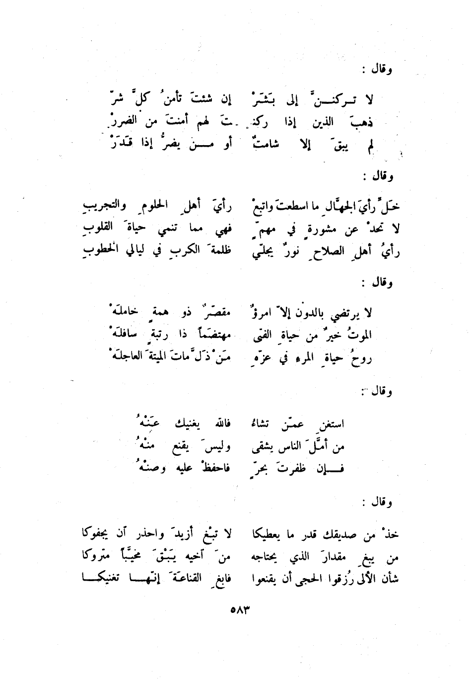 شأن الألى رزقوا الحجى أن يقنعوا ... فابغ القناعة إنها تغنيكا