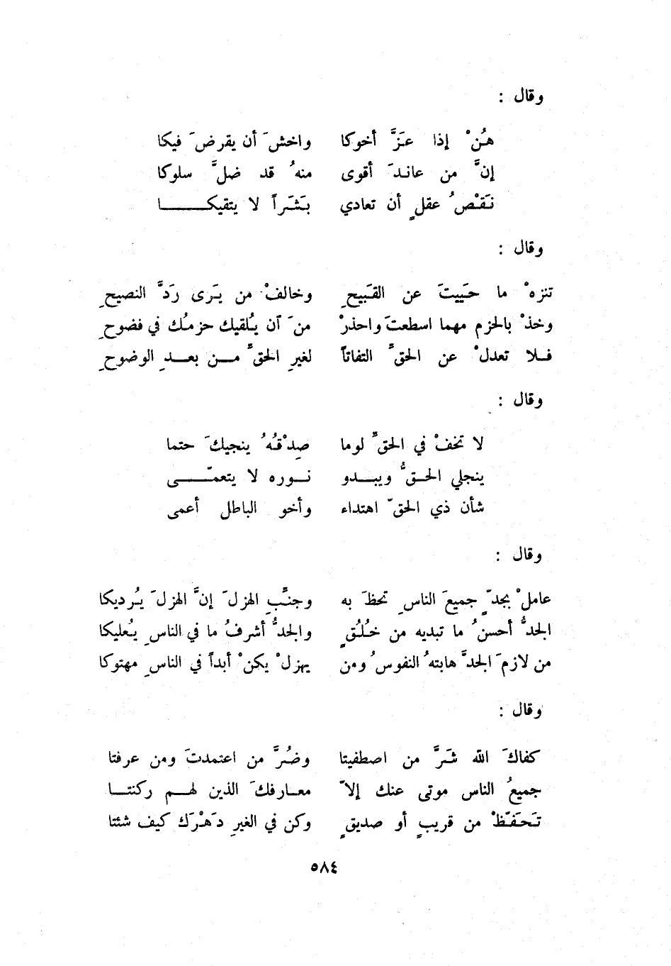نقص عقل أن تعادي ... بشراً لا يتقيكا وقال: