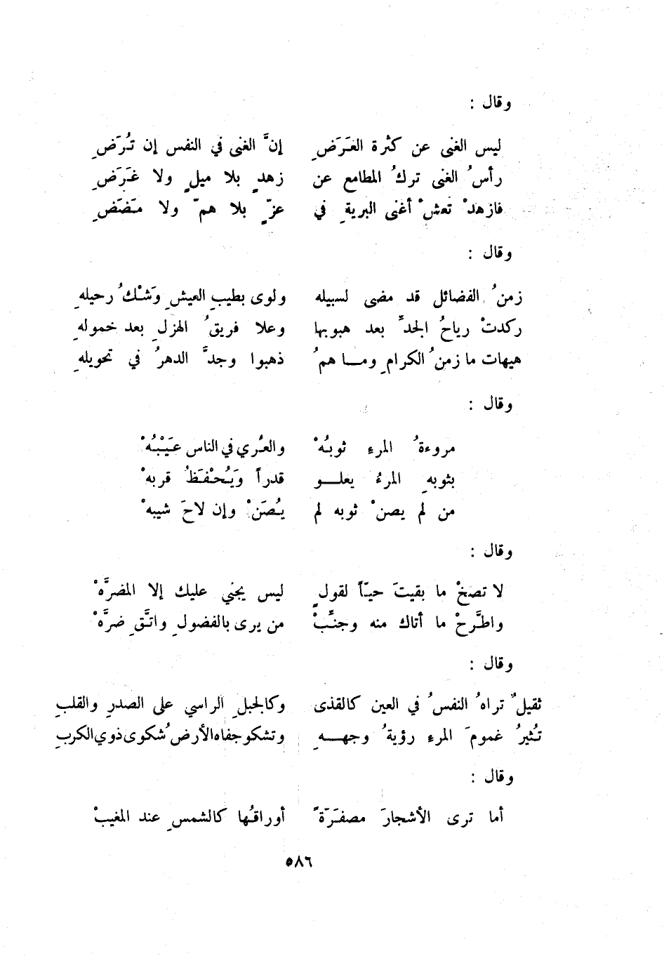 فازهد تعش أغنى البرية في ... عز بلا هم ولا مضض وقال: