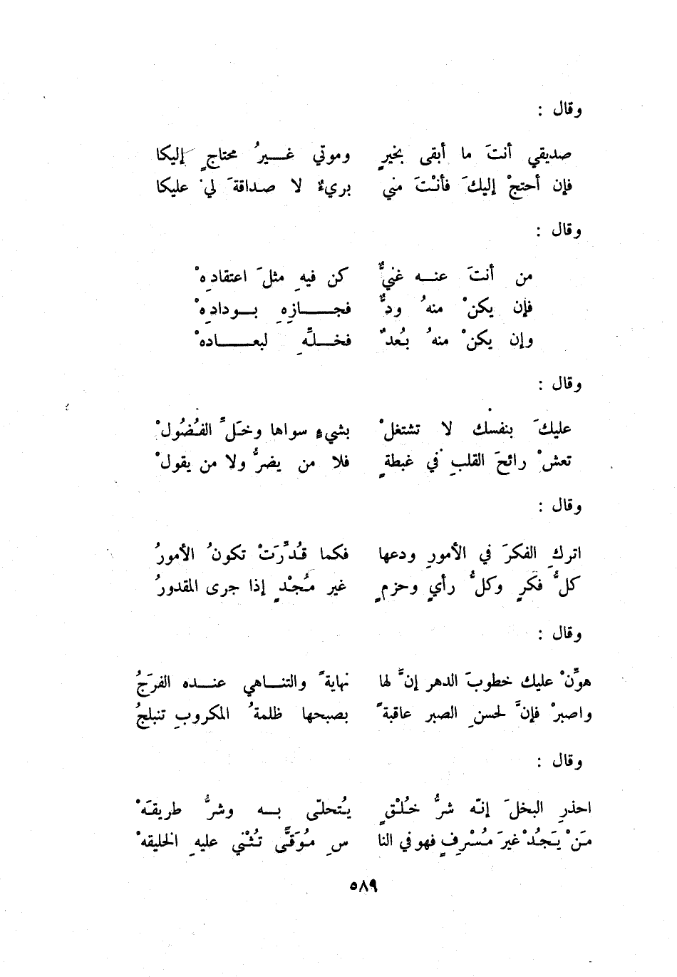 فإن أحتج إليك فأنت مني ... بريء لا صداقة لي عليكا وقال: