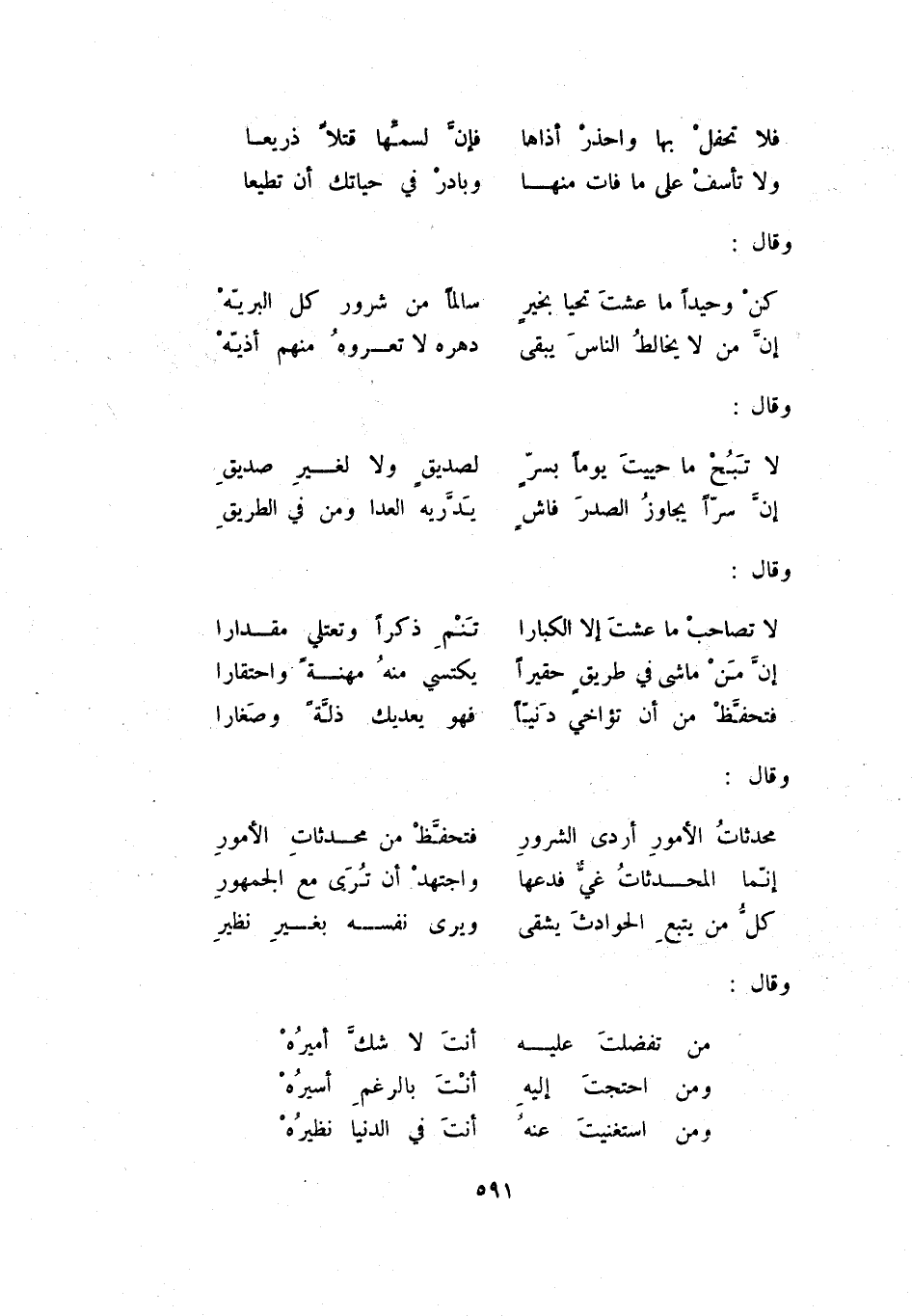 كل من يتبع الحوادث يشقى ... ويرى نفسه بغير نظير وقال: