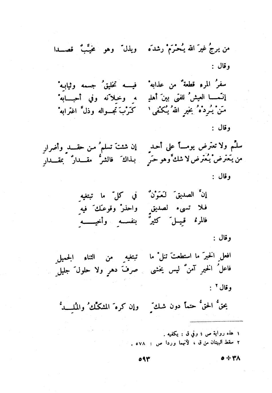 فاعل الخير آمن ليس يخشى ... صرف دهر ولا حلول جليل وقال (2) :