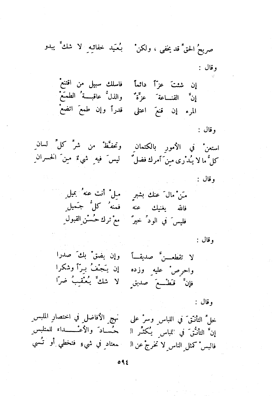 المرء إن قنع اعتلى ... قدراً وإن طمع اتضع وقال: